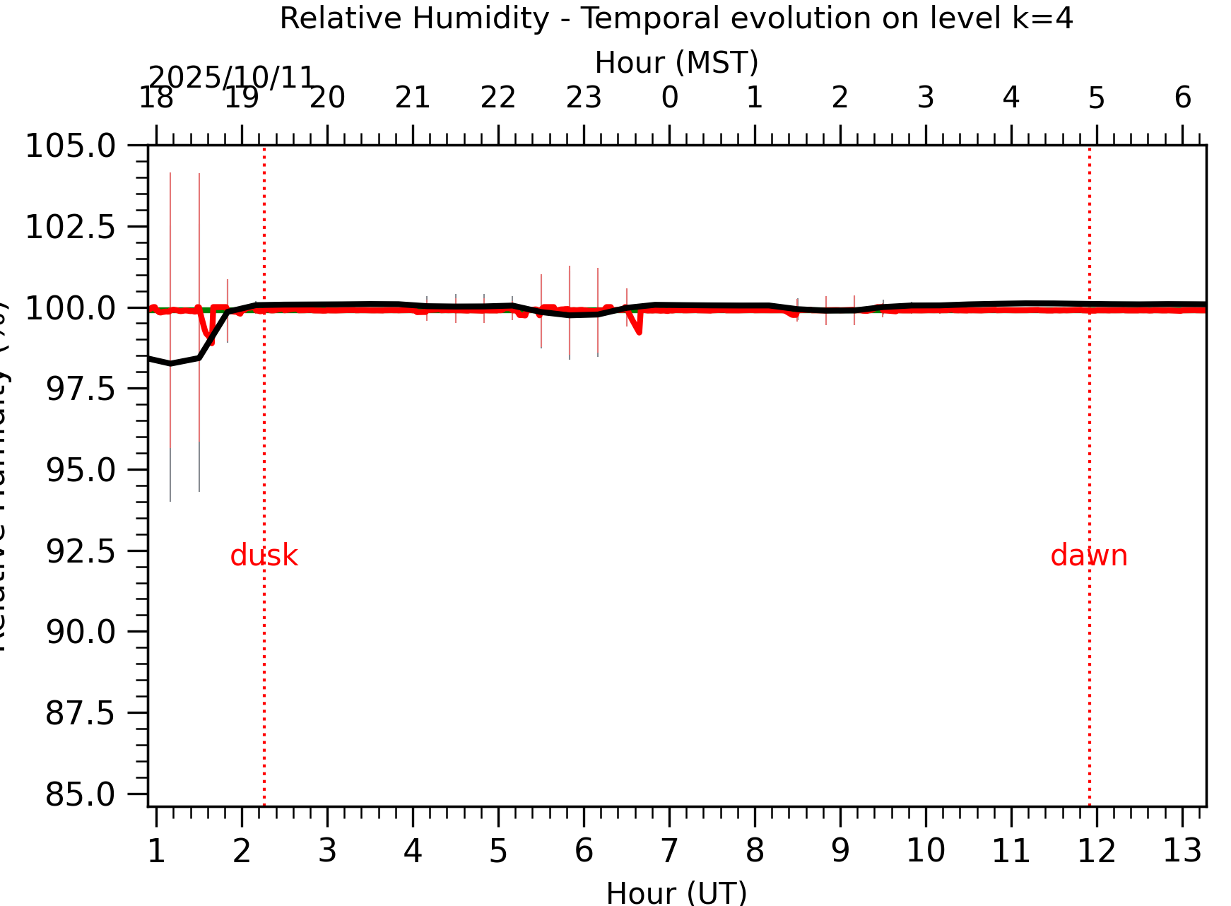 Fig. 8: Relative humidity temporal evolution between the sunset and the sunrise at [38-62]m.