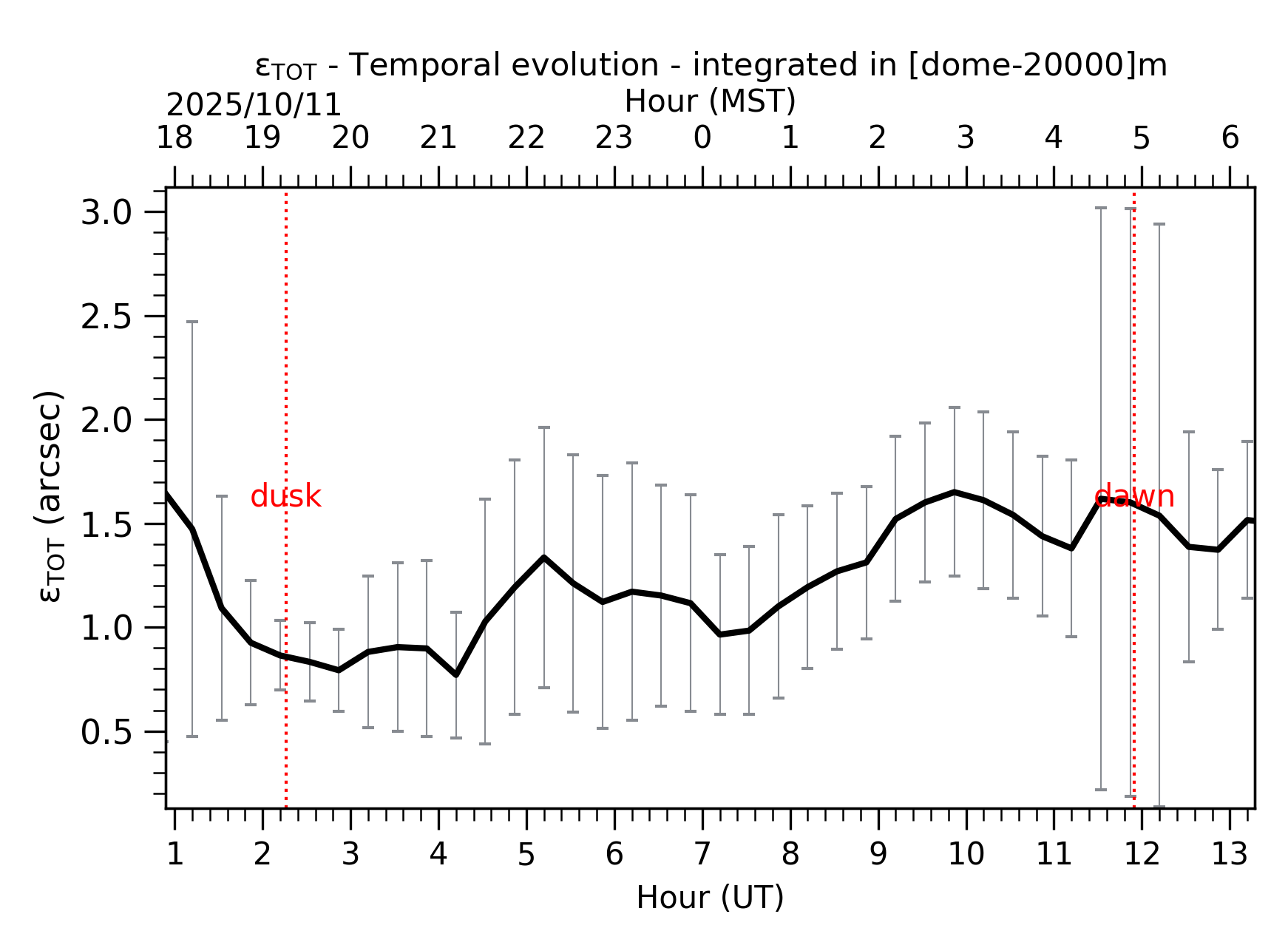 Fig. 1: Temporal evolution of εTOT ([dome-20km]) between the sunset and the sunrise.
