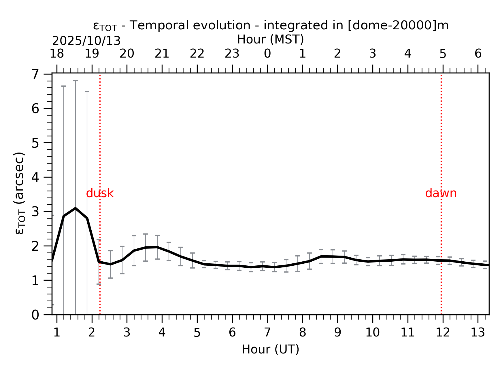 Fig. 1: Temporal evolution of εTOT ([dome-20km]) between the sunset and the sunrise. |