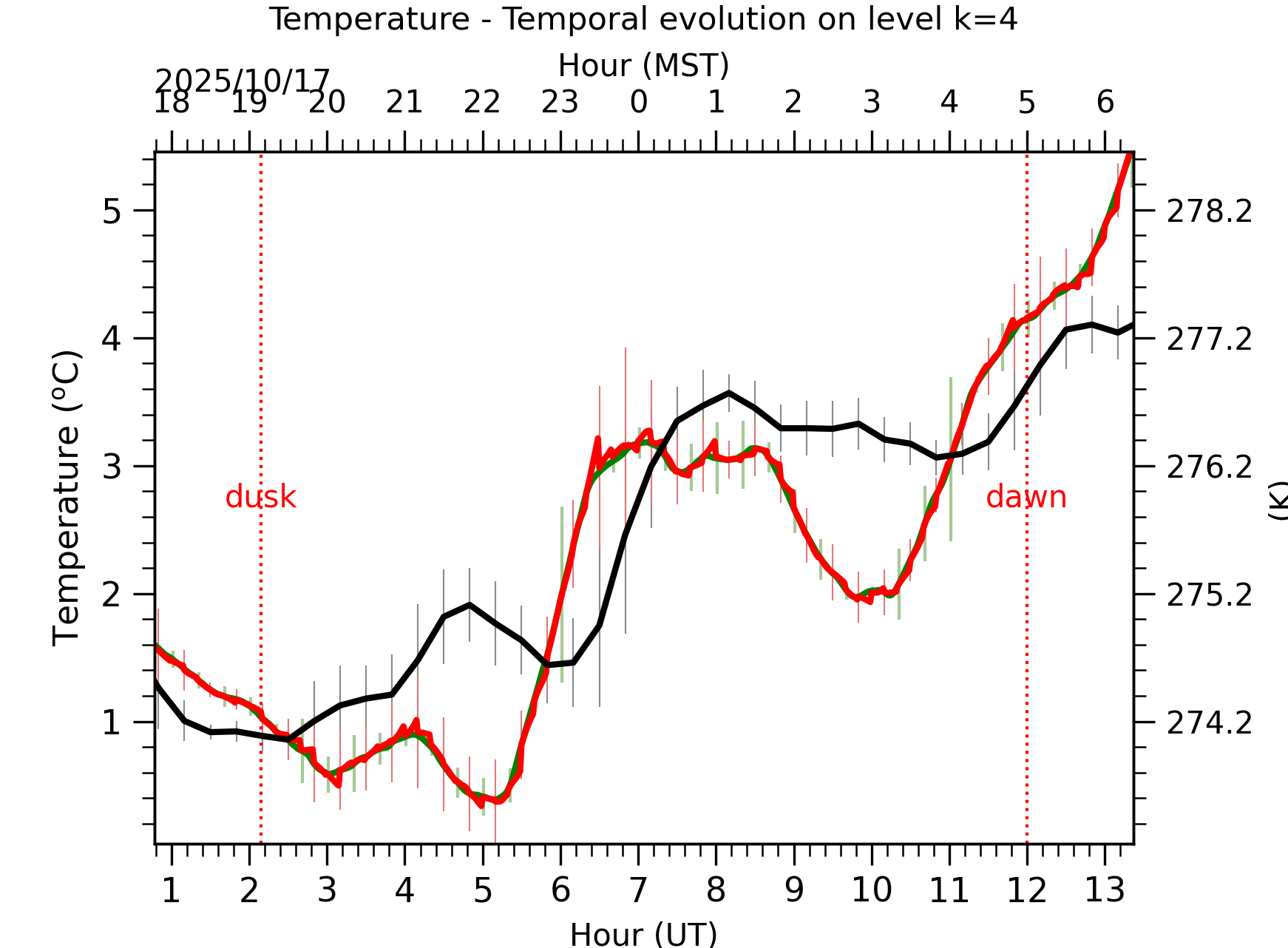 Fig. 4: Absolute temperature temporal evolution between the sunset and the sunrise at [38-62]m. |