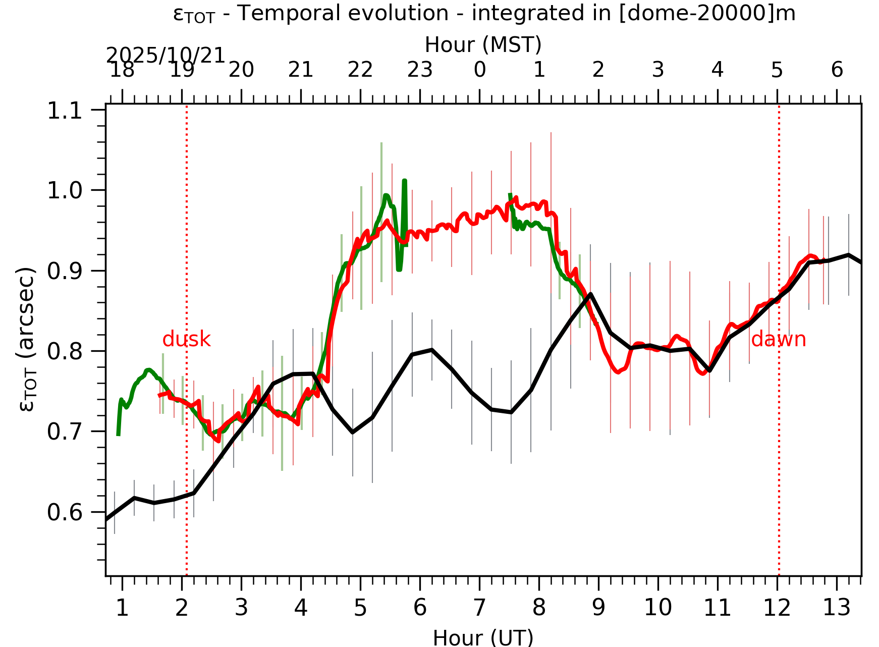 Fig. 1: Temporal evolution of εTOT ([dome-20km]) between the sunset and the sunrise. |