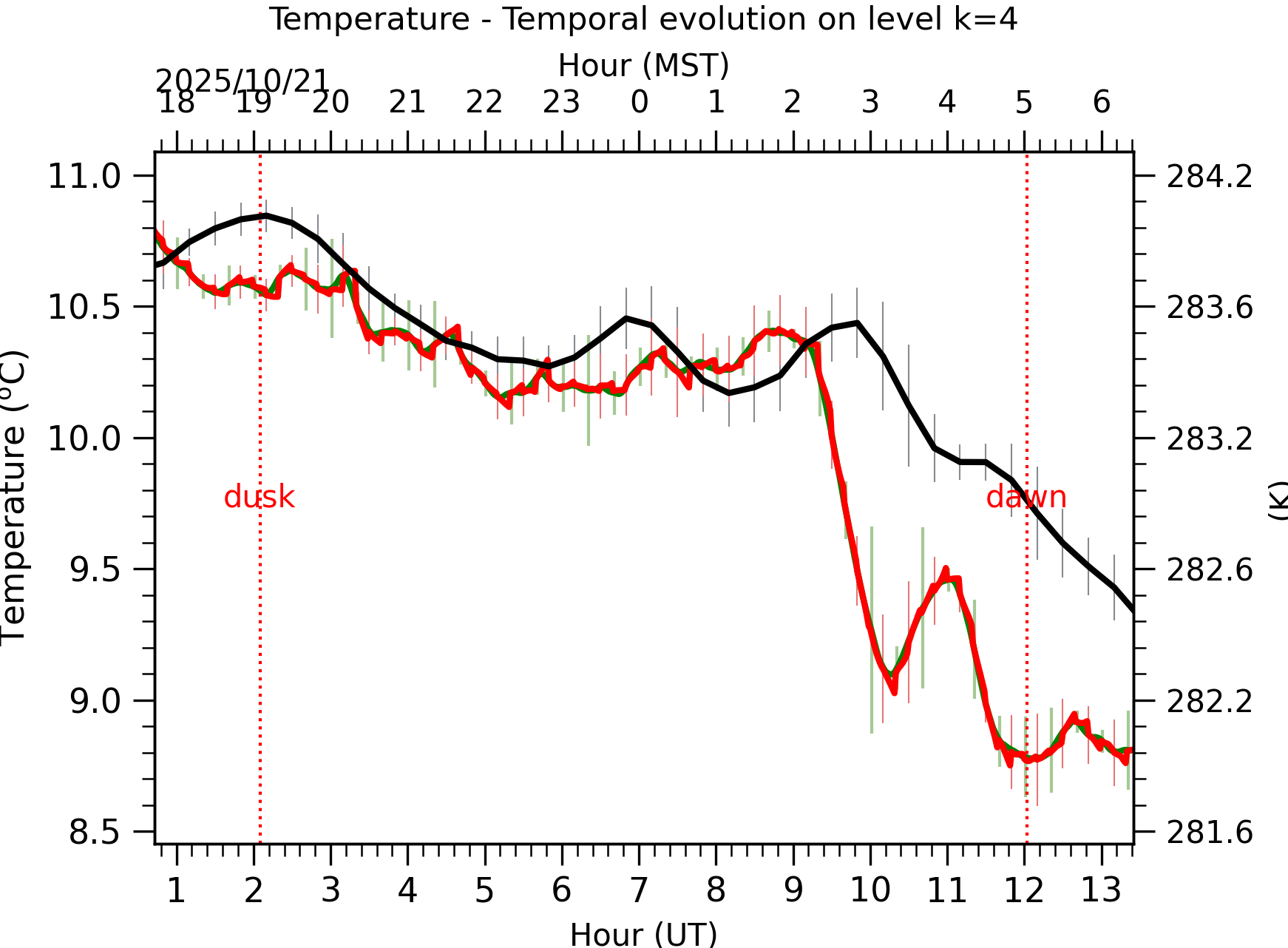 Fig. 4: Absolute temperature temporal evolution between the sunset and the sunrise at [38-62]m. |