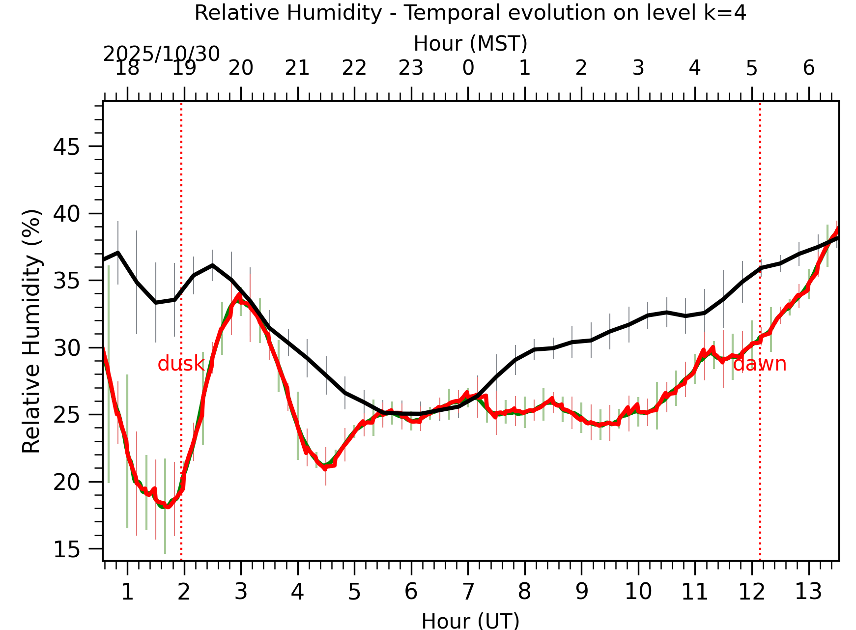 Fig. 8: Relative humidity temporal evolution between the sunset and the sunrise at [38-62]m.