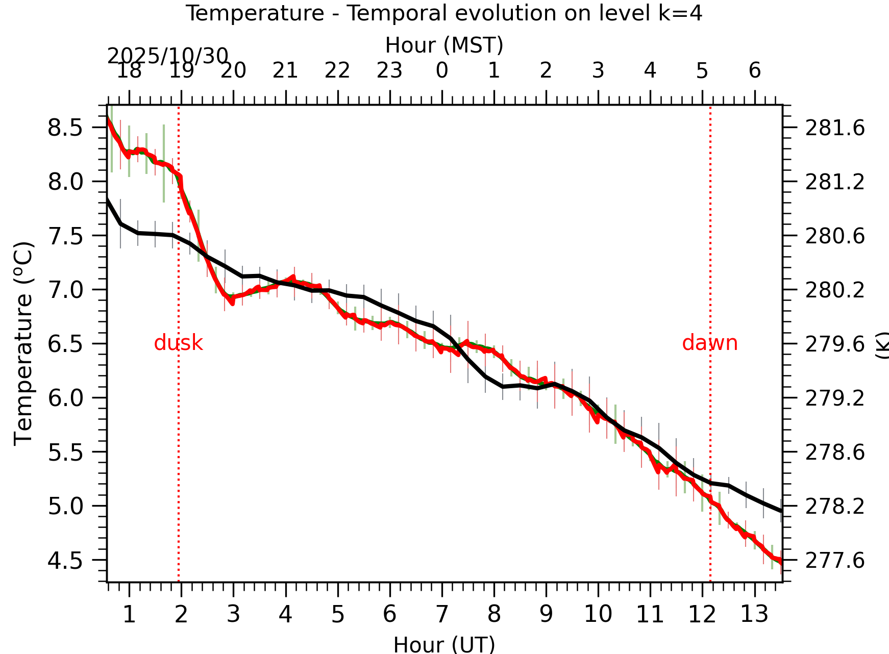 Fig. 4: Absolute temperature temporal evolution between the sunset and the sunrise at [38-62]m.