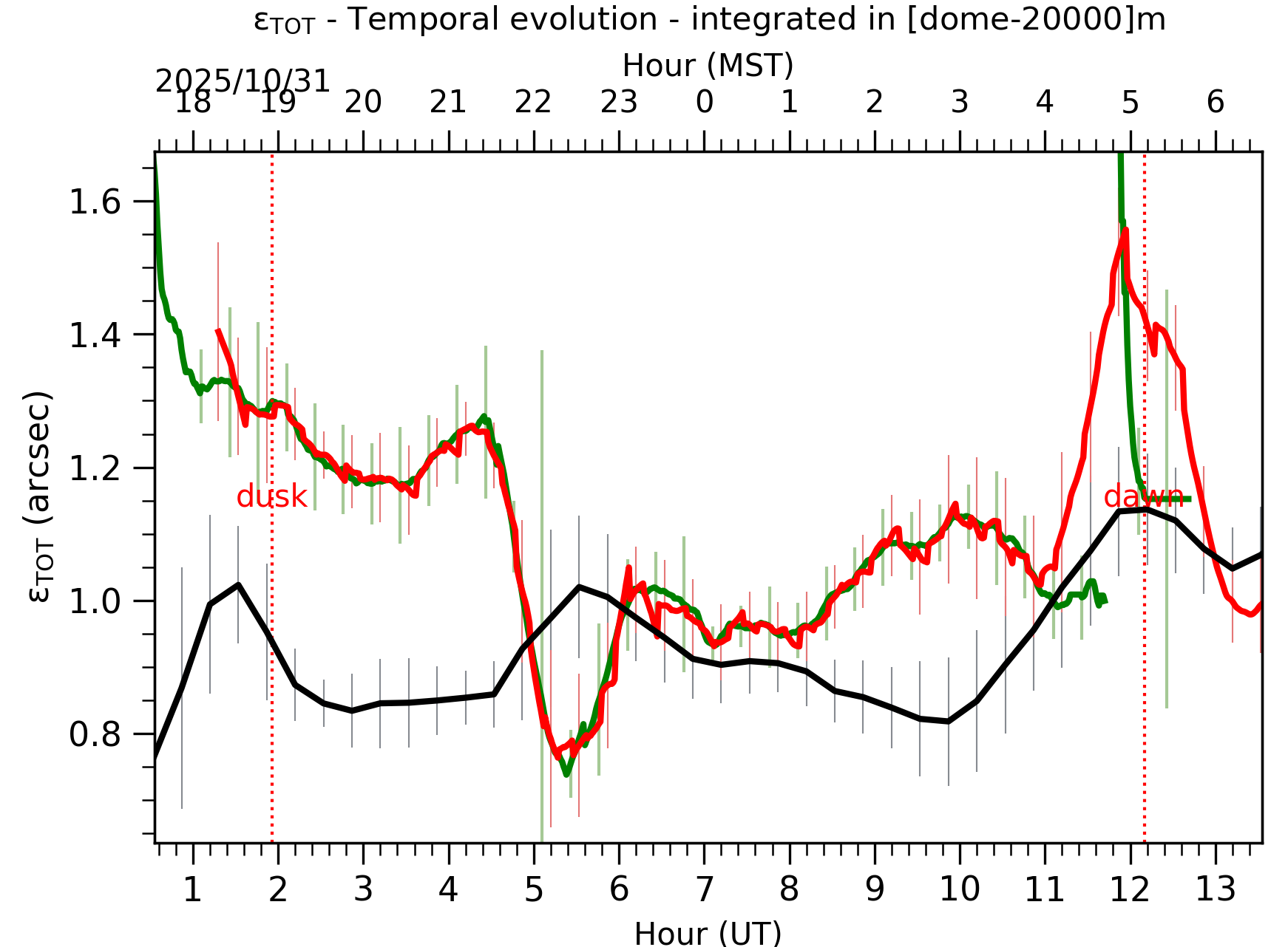 Fig. 1: Temporal evolution of εTOT ([dome-20km]) between the sunset and the sunrise. |