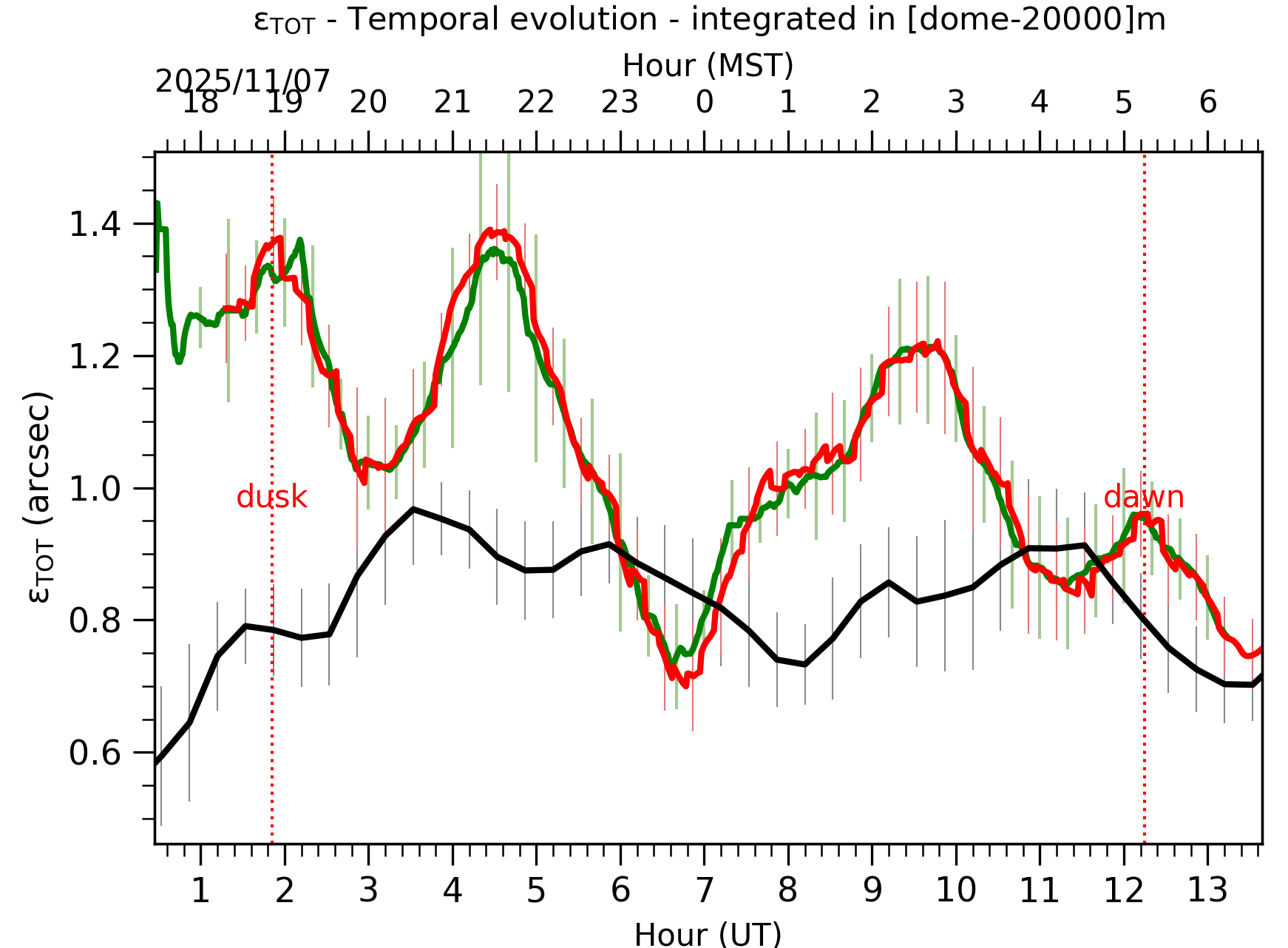Fig. 1: Temporal evolution of εTOT ([dome-20km]) between the sunset and the sunrise. |