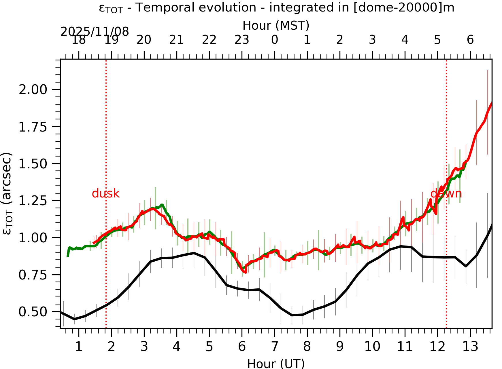 Fig. 1: Temporal evolution of εTOT ([dome-20km]) between the sunset and the sunrise.