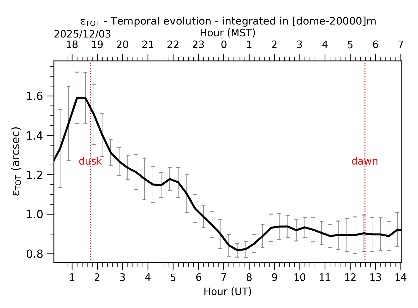 Fig. 1: Temporal evolution of εTOT ([dome-20km]) between the sunset and the sunrise. |