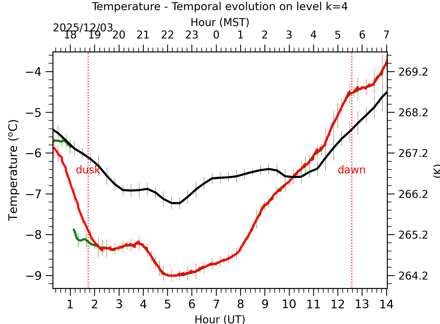 Fig. 4: Absolute temperature temporal evolution between the sunset and the sunrise at [38-62]m. |