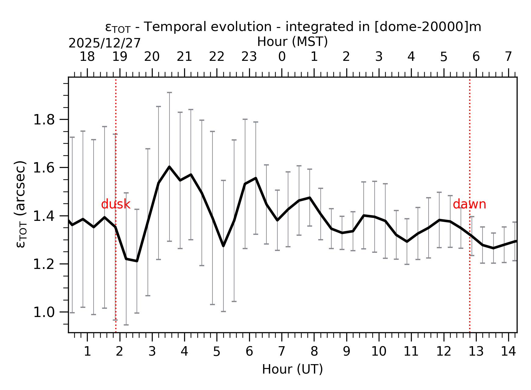 Fig. 1: Temporal evolution of εTOT ([dome-20km]) between the sunset and the sunrise. |