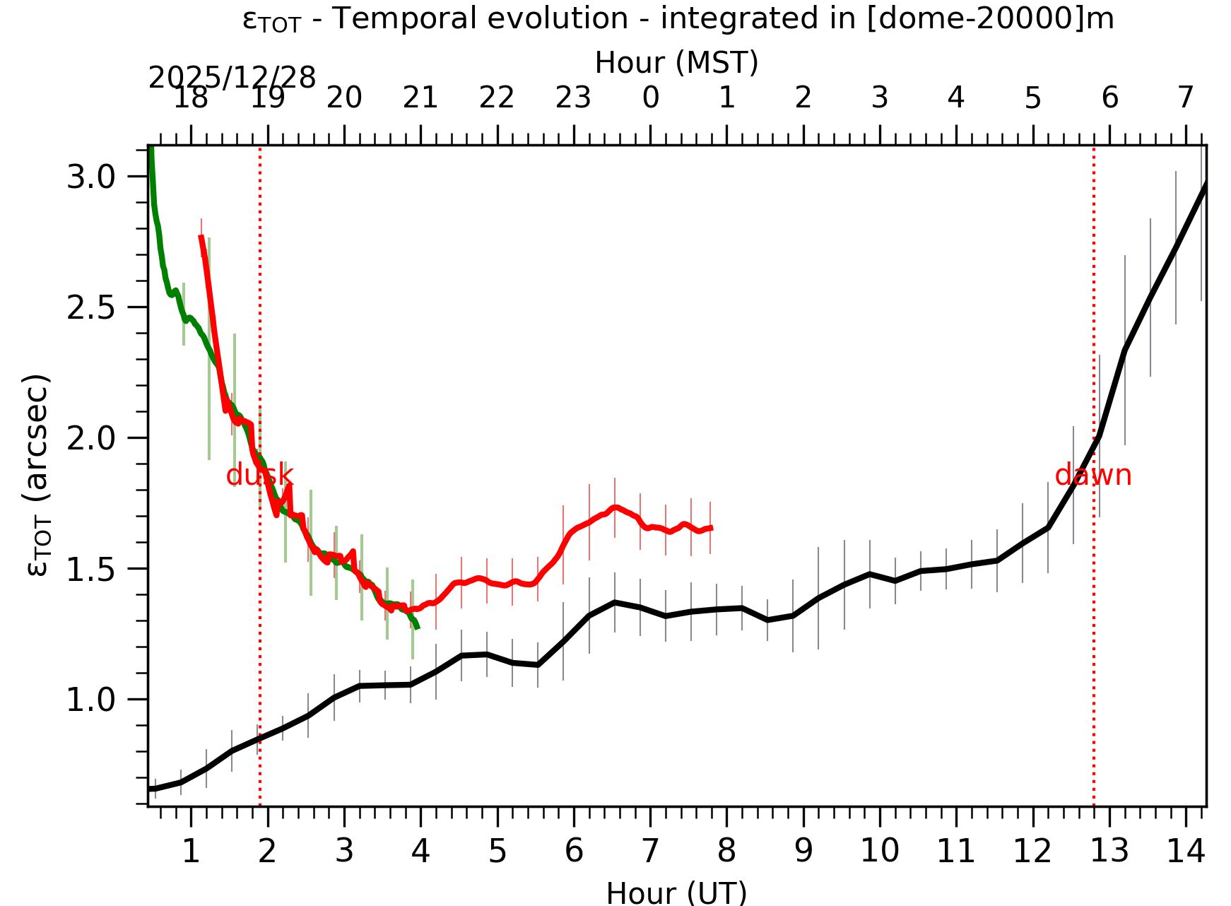 Fig. 1: Temporal evolution of εTOT ([dome-20km]) between the sunset and the sunrise. |