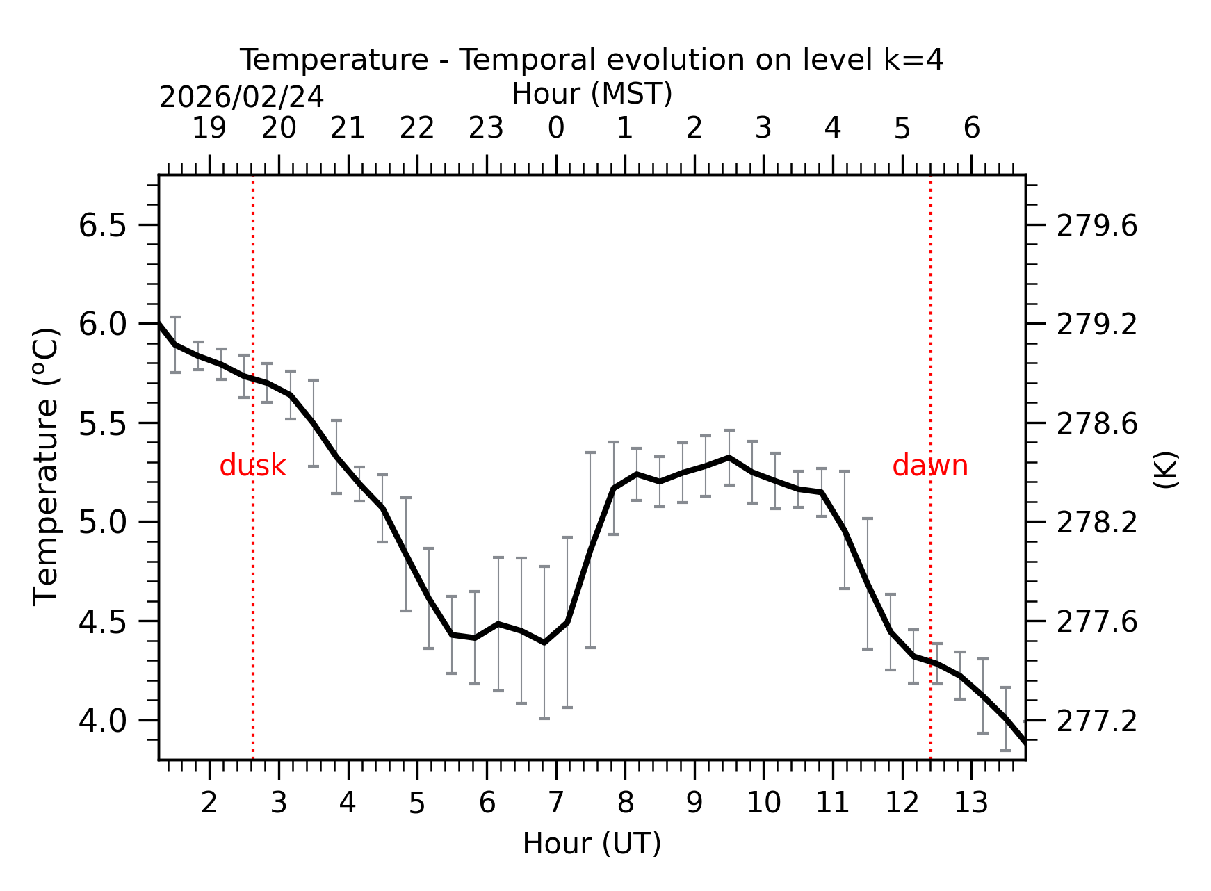 Fig. 4: Absolute temperature temporal evolution between the sunset and the sunrise at [38-62]m.