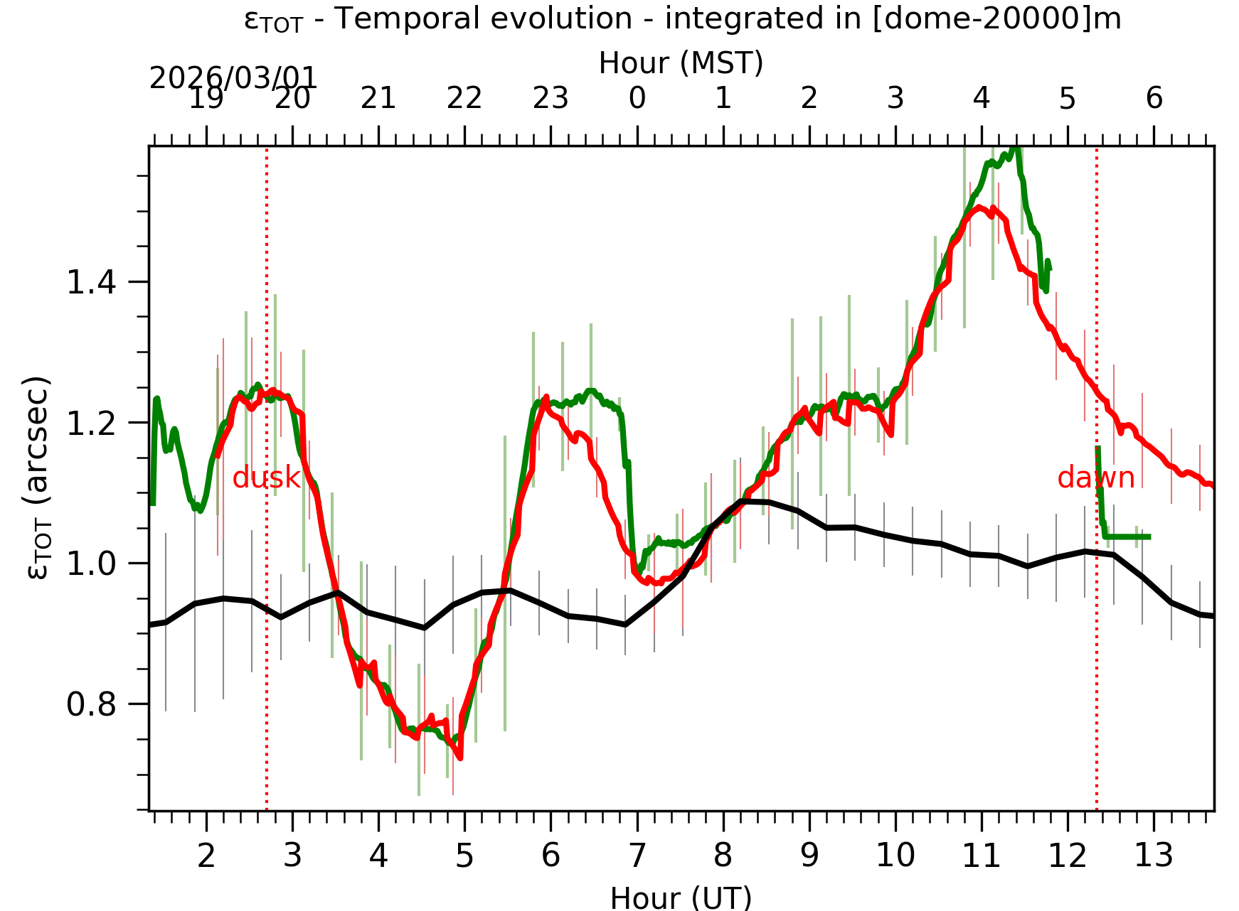 Fig. 1: Temporal evolution of εTOT ([dome-20km]) between the sunset and the sunrise.