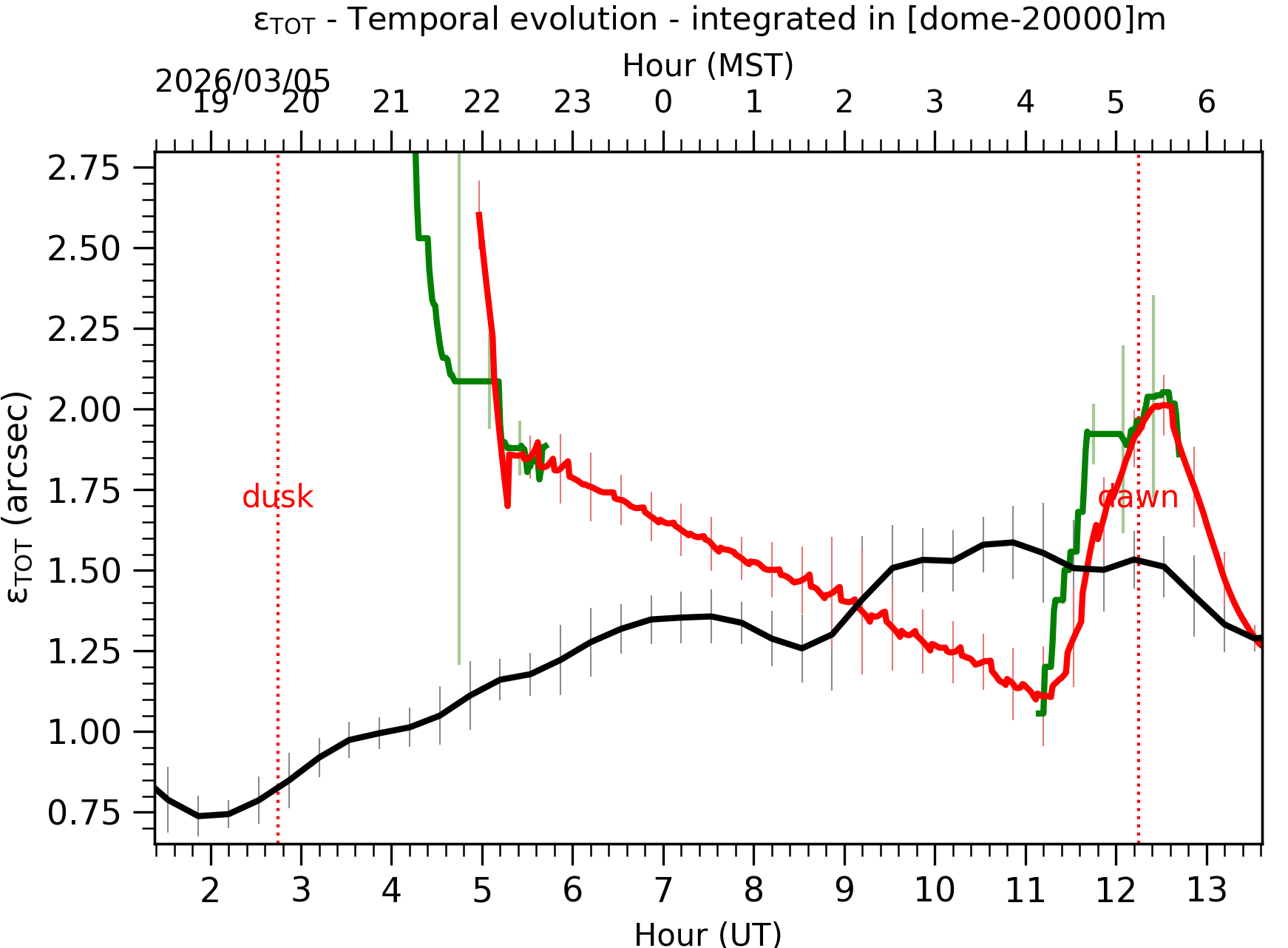 Fig. 1: Temporal evolution of εTOT ([dome-20km]) between the sunset and the sunrise. |
