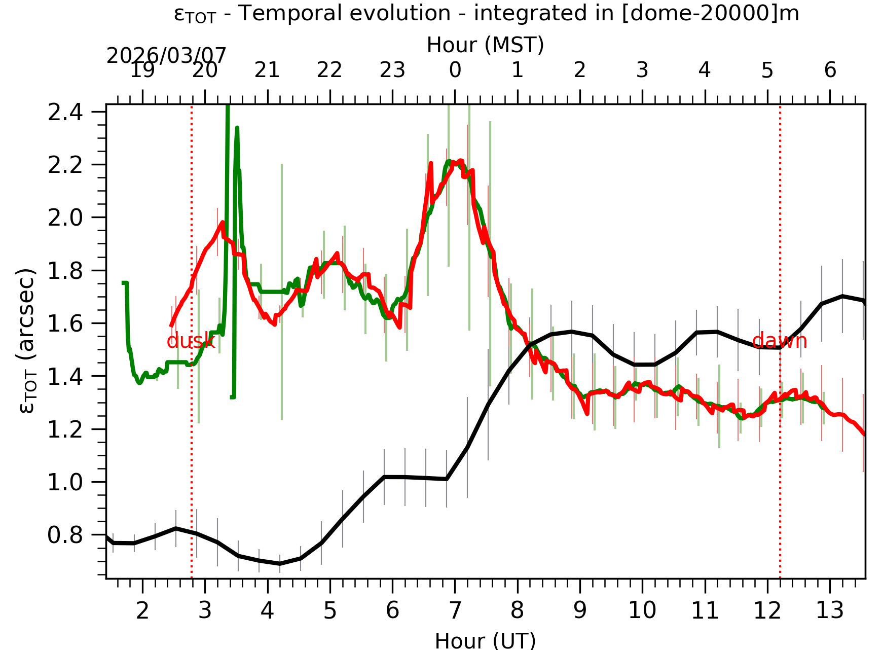 Fig. 1: Temporal evolution of εTOT ([dome-20km]) between the sunset and the sunrise. |