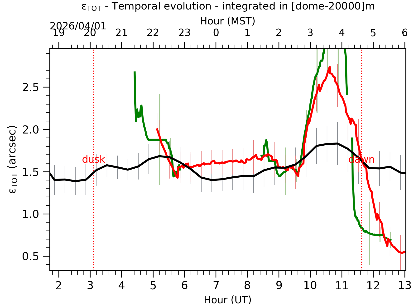 Fig. 1: Temporal evolution of εTOT ([dome-20km]) between the sunset and the sunrise.