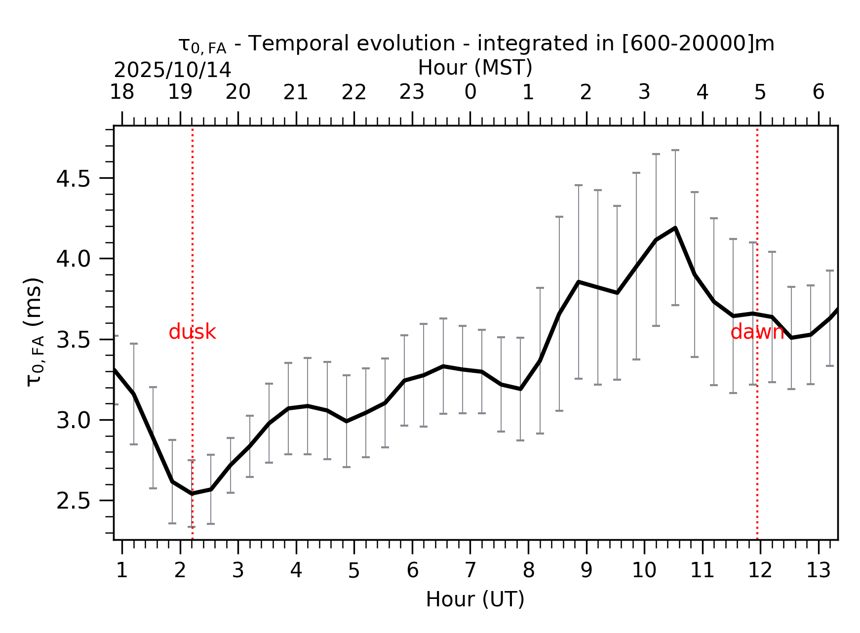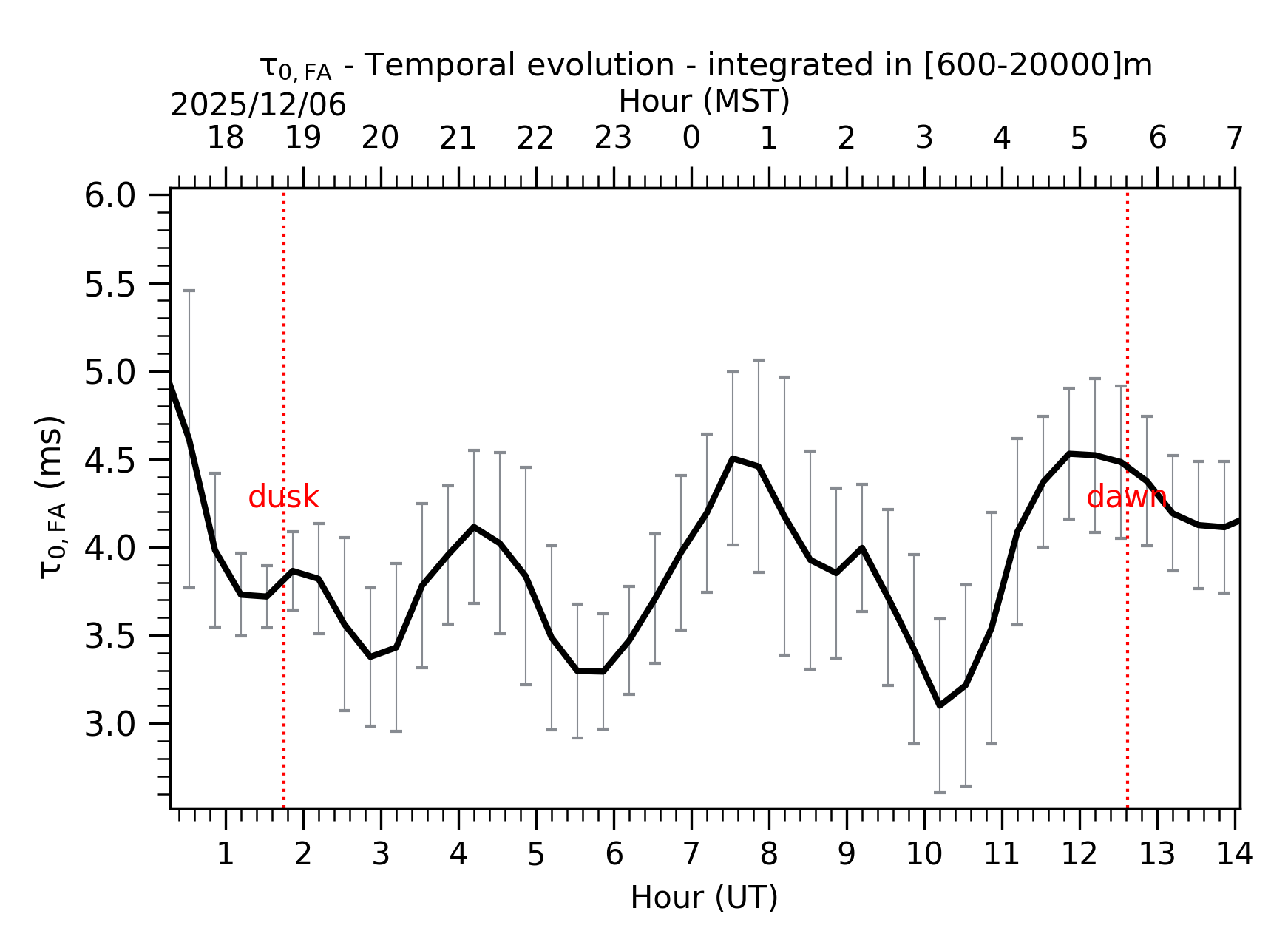 Fig. 3: Temporal evolution of τ0,FA ([600m-20km]) between the sunset and the sunrise. |