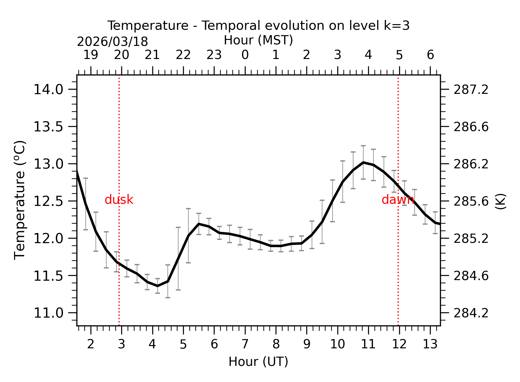 Fig. 1: Temperature temporal evolution between the sunset and the sunrise at [0-17]m. |