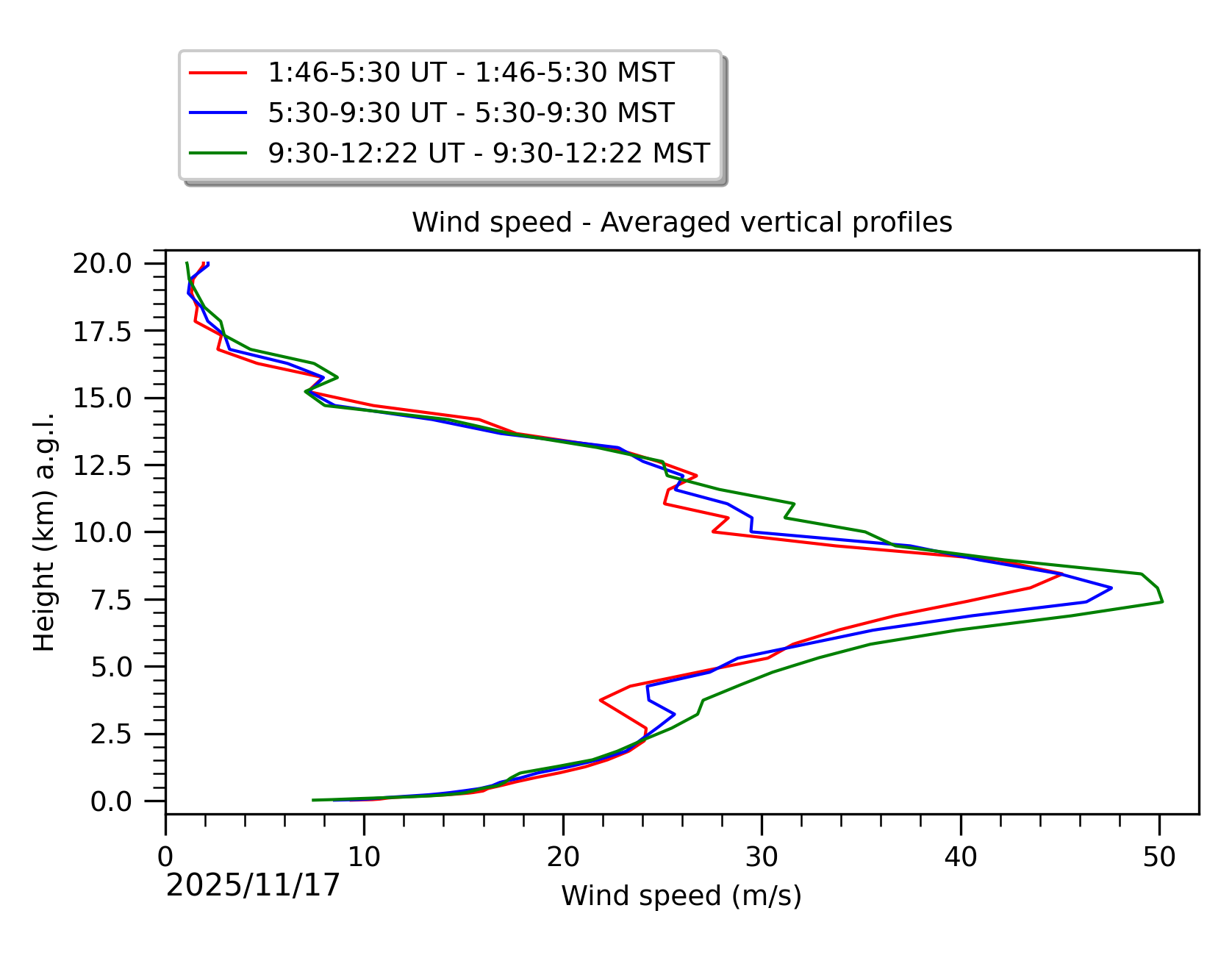 Vertical profiles are computed in the [0-20km] range above ground level (a.g.l.) and centered on the LBT. Data points frequency is 2 minutes. Here are shown:- TEMPORAL EVOLUTION: